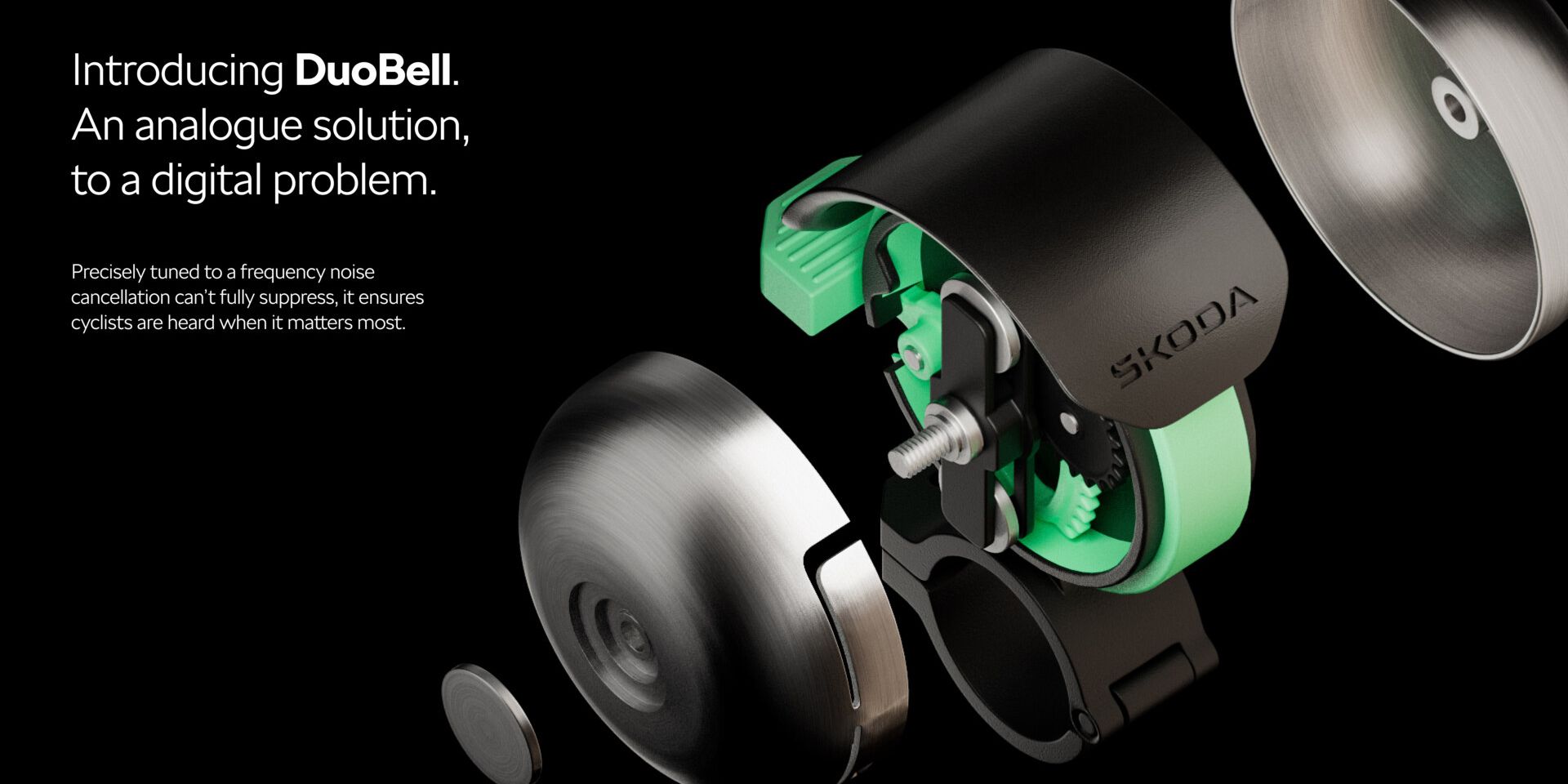 Škoda Auto has unveiled the DuoBell, an innovative bicycle bell designed to be heard even by pedestrians wearing headphones with active noise cancellation. Developed together with scientists and audiologists from the University of Salford, the DuoBell is a clever mechanical solution created to improve safety for both cyclists and pedestrians in busy urban areas.